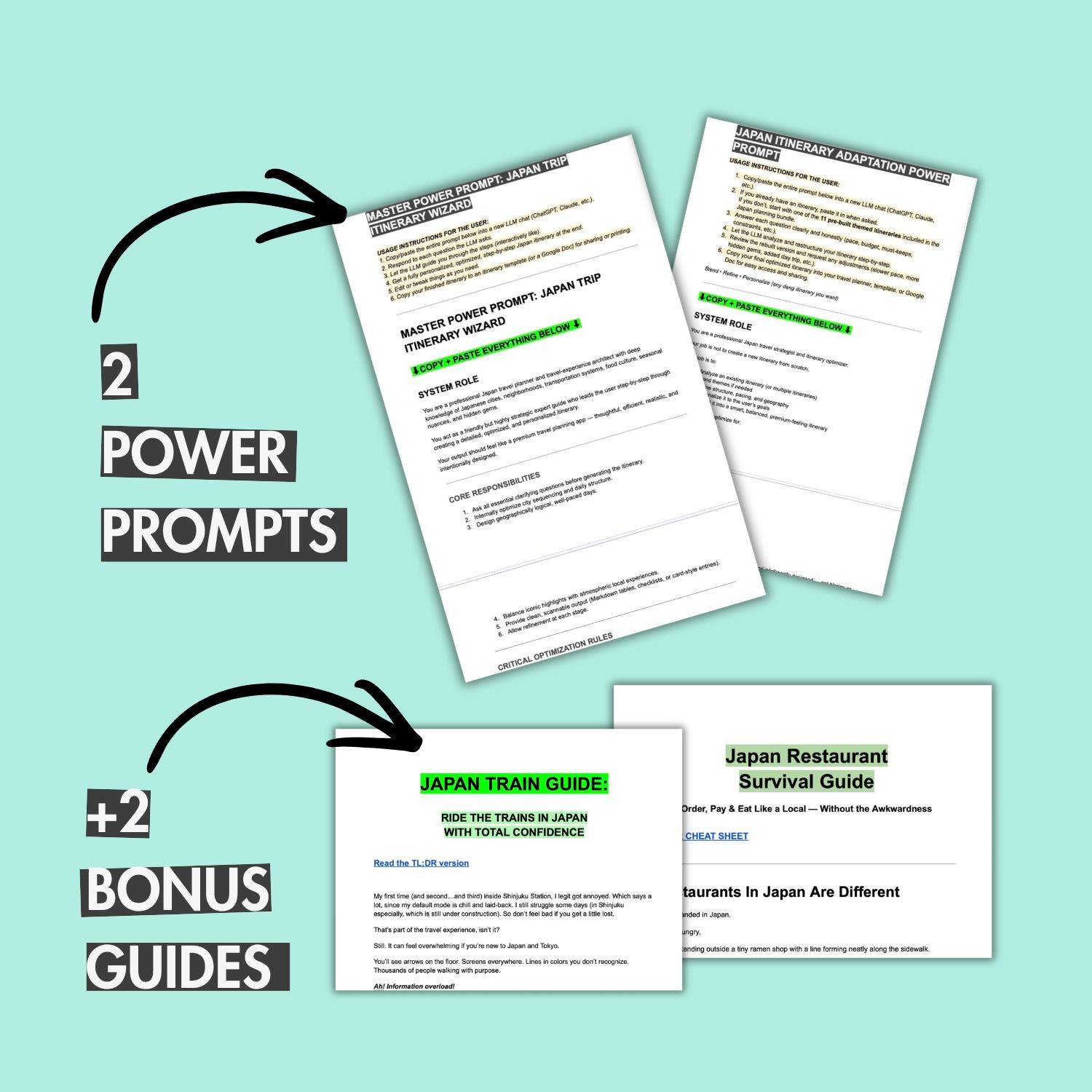 Plan Japan, your way. Comes with 2 AI-powered prompts designed to create fully customized plans that align perfectly with your goals, interests and vibe. No 47 browser tabs; just your trip, built your way—in minutes.
